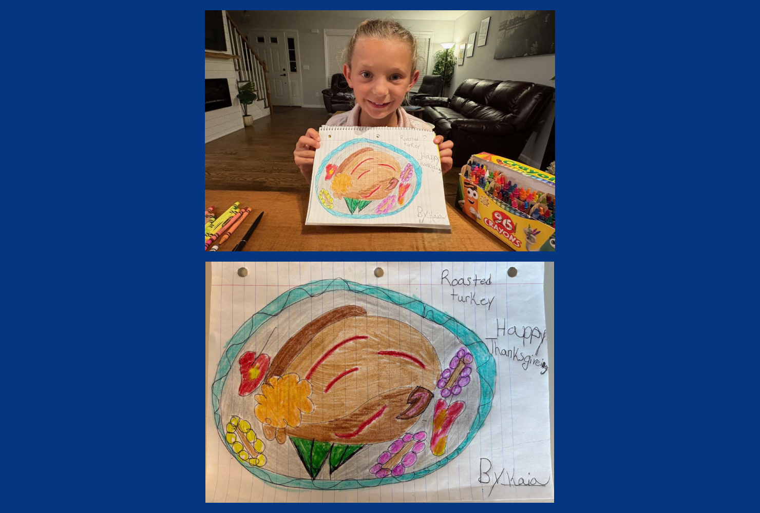 Seven-year-old Kaia submitted a beautiful drawing of a Thanksgiving dinner.